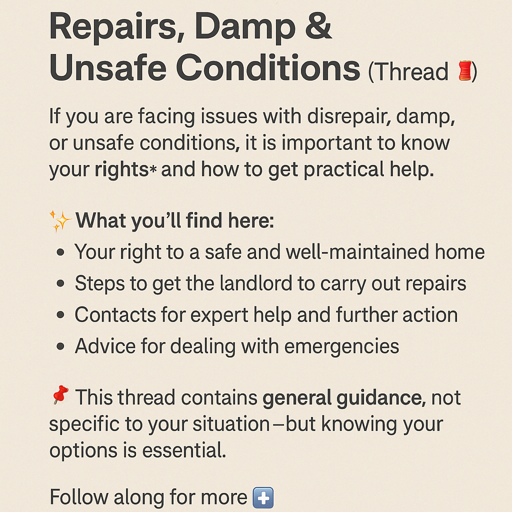 This thread is here to help anyone dealing with poor housing conditions—whether it’s damp, mould, broken heating, or unsafe structures. Knowing your rights and the steps you can take is essential.